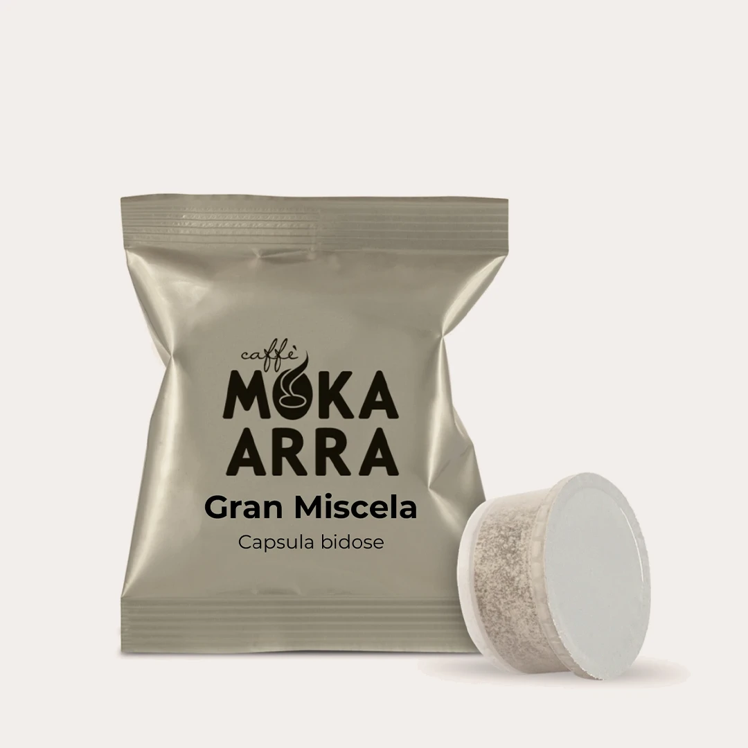 Gran Miscela 60% Arabica 40% Robusta dal gusto deciso e ben bilanciato.